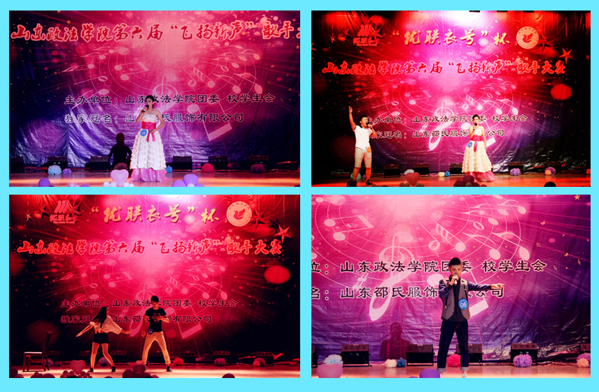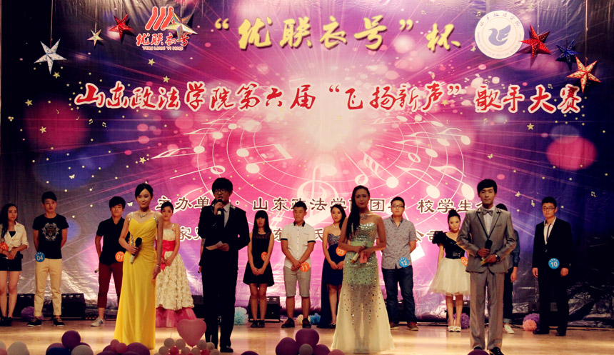 为全面贯彻实施“靛青工程”,进一步推进我校大学生素质教育创新发展,由校团委和校学生会主办的第六届“优联衣号”杯“飞扬新声”歌手大赛决赛5月29日晚在学校礼堂圆满落幕。大赛邀请了山东邵氏服装有限公司总经理邹红梅女士、山东伟亮律师事务所主任律师王伟亮、校工会主席张景华、校团委书记陈志勇、山东艺术学院音乐学院文礄等老师担任评委,近1000名观众观看了比赛。